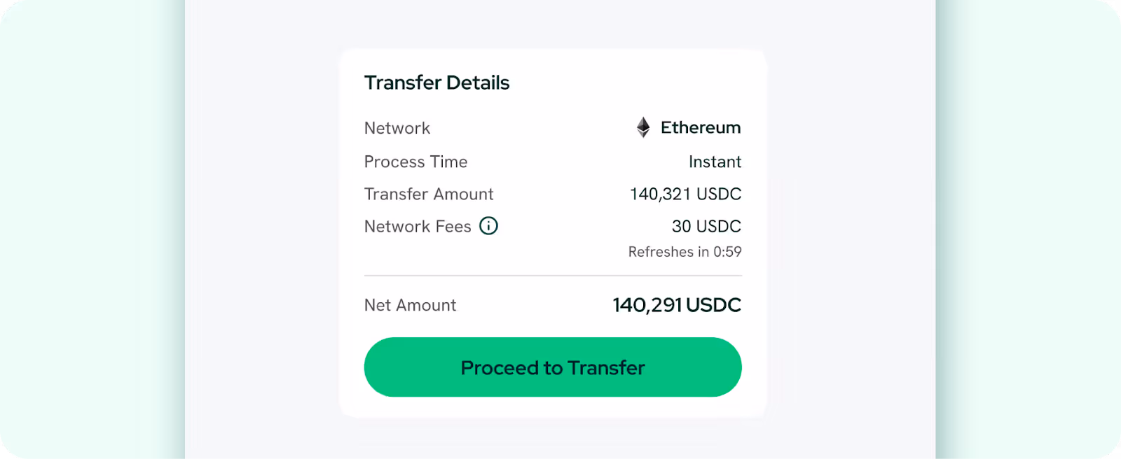 - You will receive an email once your funds are credited to your blockchain account (network transaction fees apply).