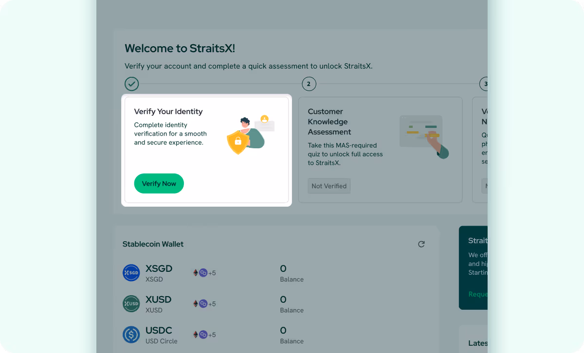Verifying your StraitsX account not only safeguards your assets, but also ensures seamless access to our full suite of services. Whether you're based in Singapore or abroad, we've made verification straightforward and efficient, just follow the steps below.