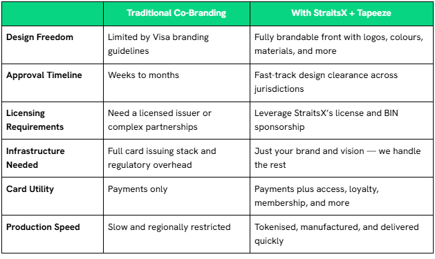 As a trusted Visa-licensed card issuer and BIN sponsor, StraitsX is bringing this cutting-edge solution to our ecosystem. This partnership allows our card partners—from fintechs and lifestyle brands to communities and clubs—to now offer impactful, custom-branded cards without the usual hurdles of long delays and rigid design restrictions.