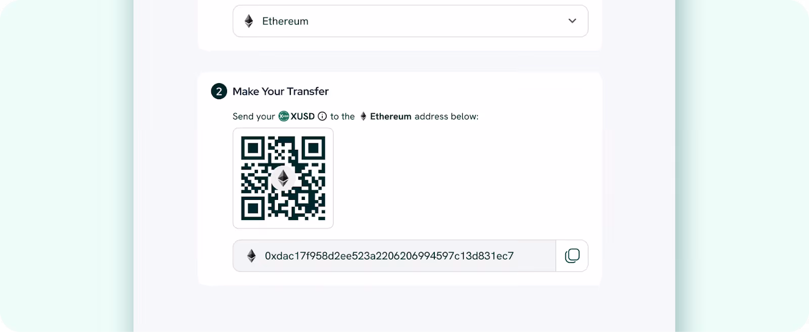 - Select XUSD to receive