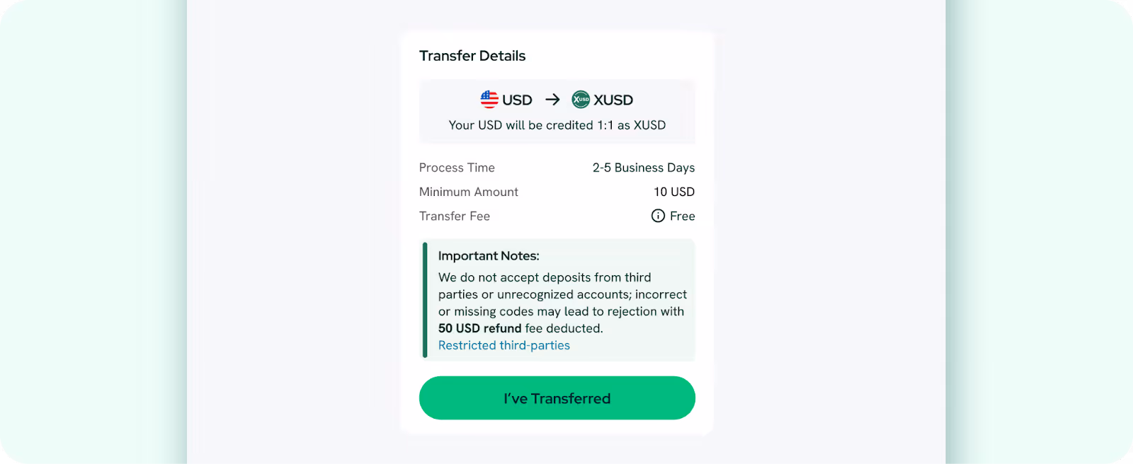 Minimum transfer amount: 1 XUSD
