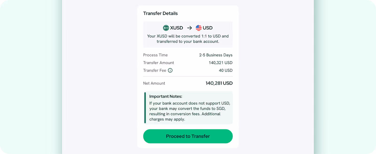 - Check the transfer details and click Proceed to Transfer.