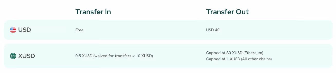 Fees: Capped at 30 XUSD (Ethereum, BNB Smart Chain)